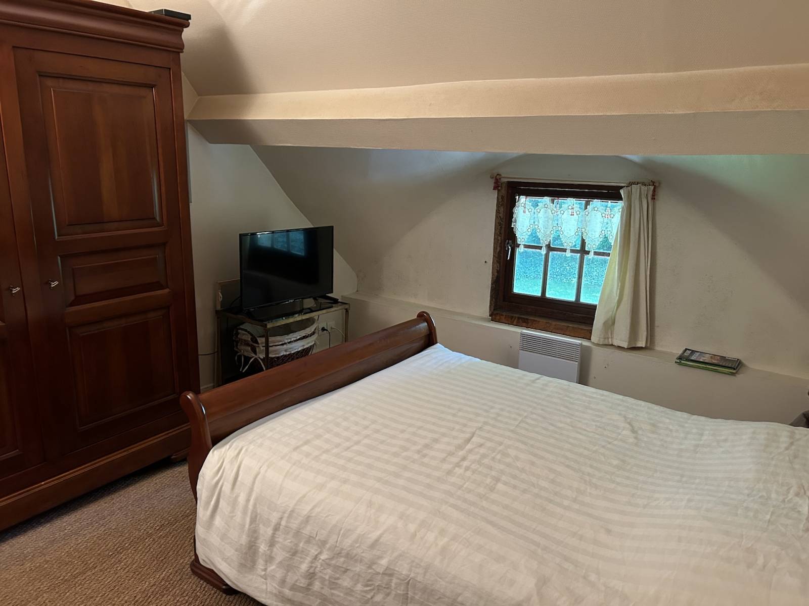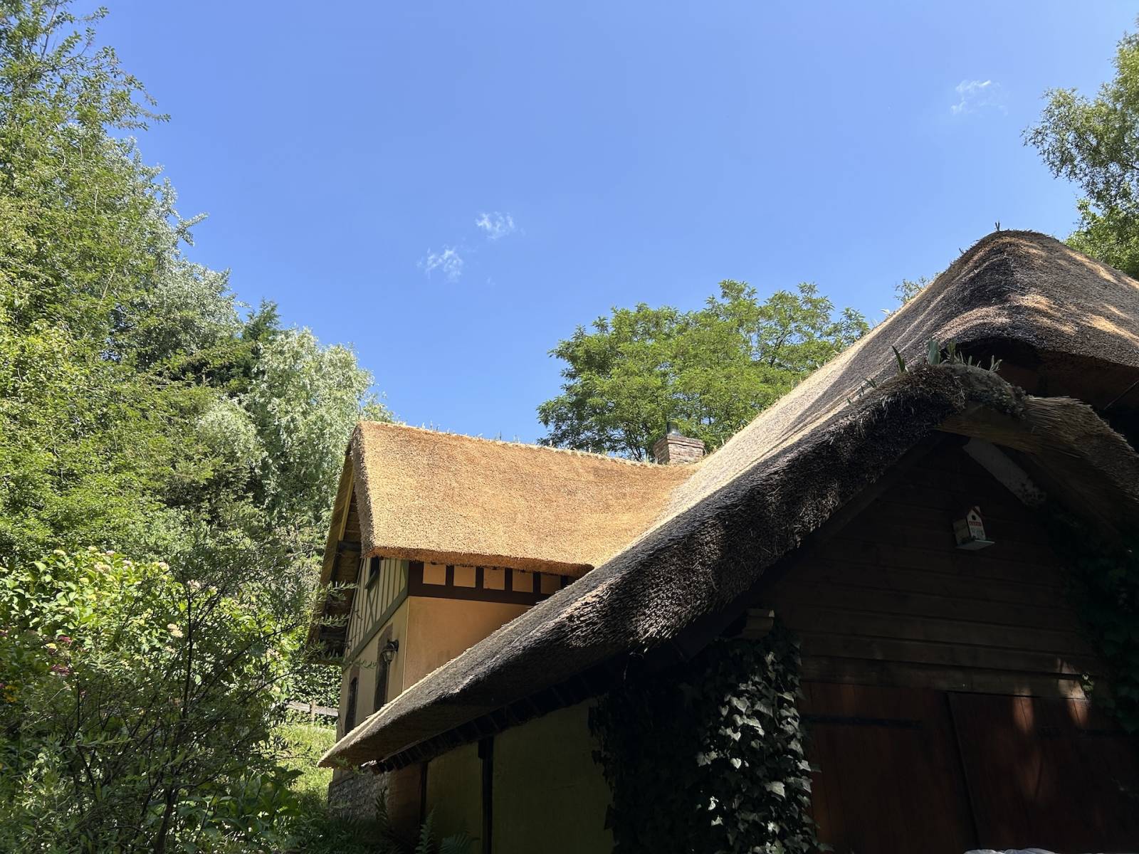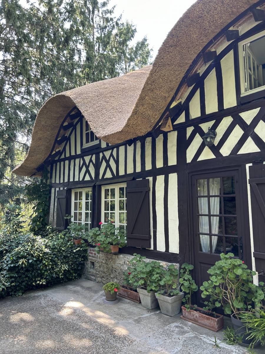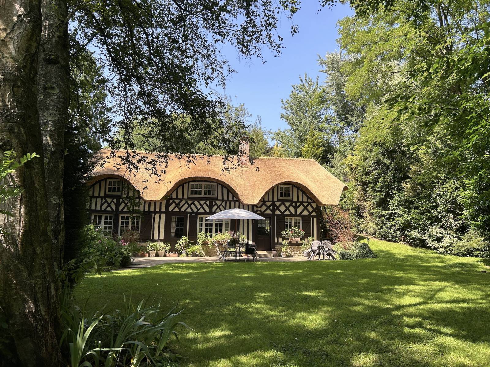 ADORABLE 1825 THATCHED COTTAGE IN A PEACEFUL WOODED AND ROLLING LANDSCAPE : This 5 rooms thatched cottage of about 110 sqm offers on the ground floor a 20 sqm dining room with fireplace, a 20 sqm living room, a fully fitted 14 sqm kitchen, an 8 sqm shower room, a 3 sqm cloakroom, a separate toilet and a 6 sqm pantry. Upstairs are a 5 sqm bedroom, an 8 sqm bathroom, a separate toilet and two further bedrooms of 7 and 10 sqm. Recent thatched roof. Electric heating. Connected to mains drainage. Outbuildings include a 35 sqm garage building with upper floor, an adjoining 20 sqm garage, a garden shed and a 22 sqm cellar. The property stands within a lovely landscaped garden of about 3,200 sqm. This charming house is ideal as a second home, located in an exceptional setting of absolute calm, surrounded by woods and gentle valleys, less than 2 hours from Paris and 40 minutes from the sea (Saint-Pierre-en-Port, Les Petites-Dalles and Honfleur). Full of character, the cottage is immediately habitable but can be reimagined and updated to your own taste.