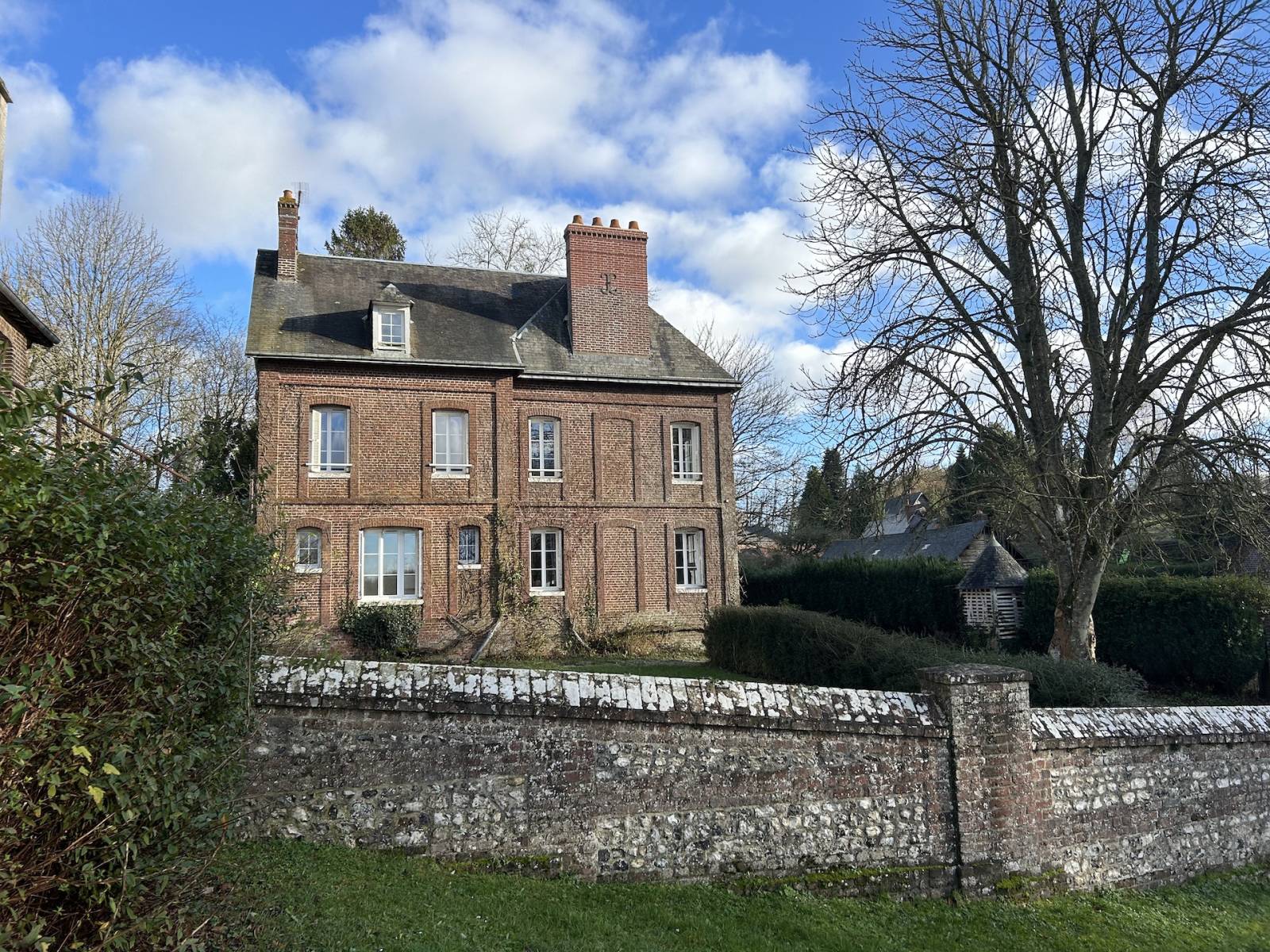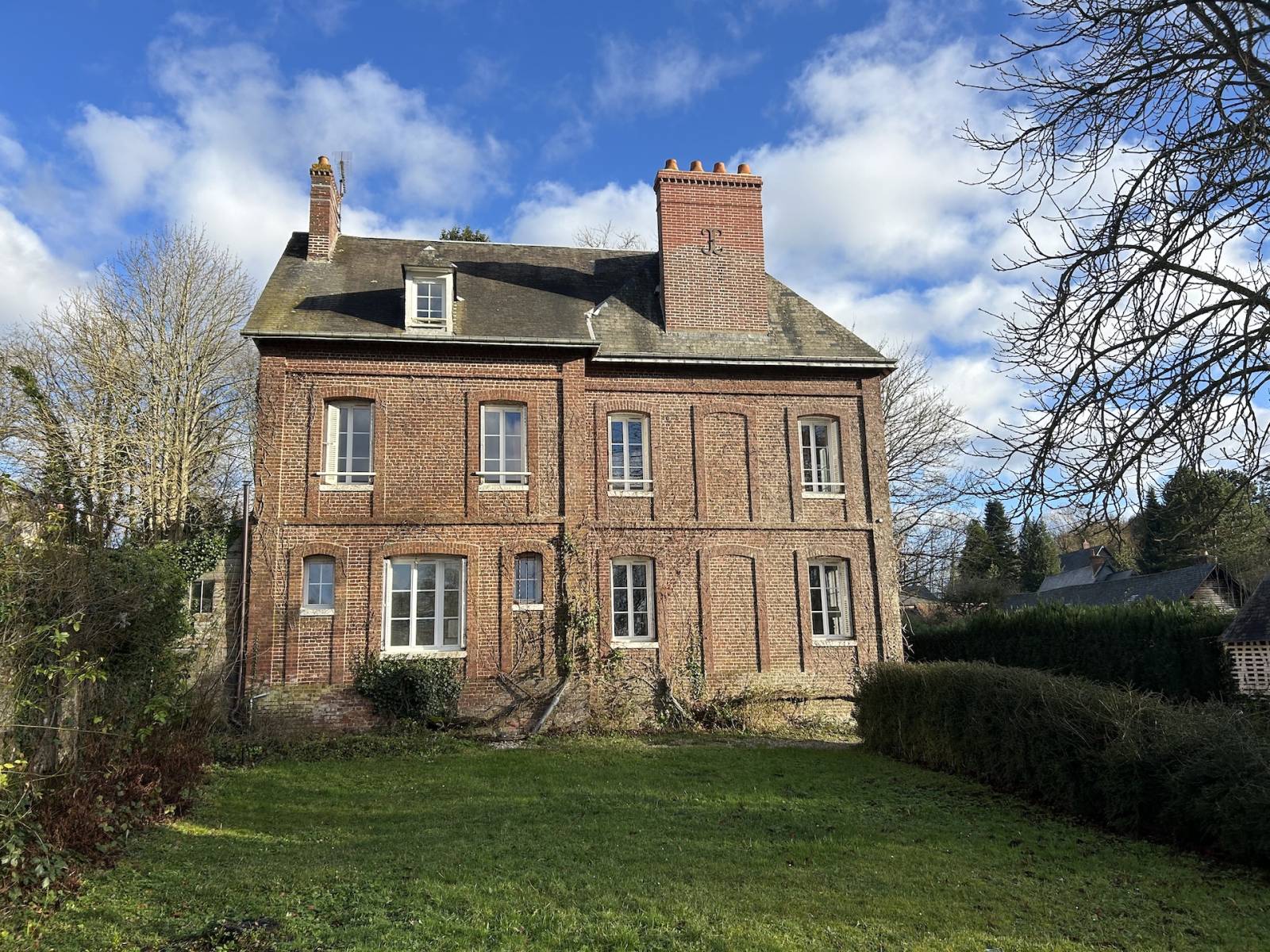 BELLE MAISON DE MAÎTRE A 25 MINUTES DES PLAGES DE LA CÔTE D’ALBÂTRE : Cette vaste maison de maître en briques d'environ 265 m2 pour 11 pièces principales comprend, au rez-de-chaussée : une entrée de 13 m2, une salle à manger de 25 m2 avec cheminée, deux salons de 11 et 15 m2 dont un avec cheminée, une cuisine de 13 m2, une buanderie de 12 m2, une chaufferie de 8 m2 et un wc séparé. Au premier étage : le palier de 6 m2 dessert 5 chambres (25, 13, 12, 11 et 12 m2) dont la plus grande possède un dressing de 6 m2, une salle de bain et douche avec wc de 12 m2 et un dressing de 3 m2. Au deuxième étage : 2 chambres de 17 m2, un dortoir de 30 m2 et un petit grenier de 5 m2. La propriété offre également un ancien garage de 27 m2, un atelier de 10 m2 et une annexe de 28 m2. Le tout sur un terrain de 1.303 m2. Chauffage individuel par chaudière à fioul. Double vitrage. Assainissement individuel. Située dans un joli village normand à moins de 30 minutes des plages de POURVILLE, de QUIBERVILLE et de VARENGEVILLE, cette maison de maître correspond parfaitement à un mode de vie bourgeois et représente une belle opportunité d’acquérir une grande maison de famille pouvant accueillir plusieurs générations.
