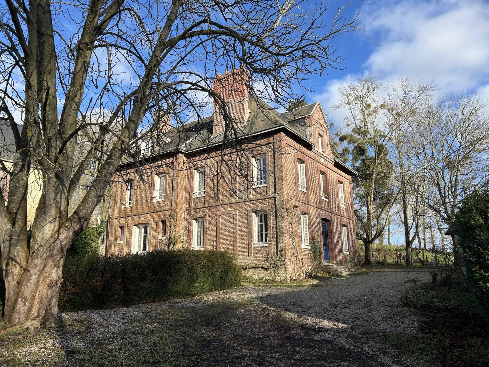 MASTER'S HOUSE 25 MINUTES FROM THE BEACHES OF THE ALABASTER COAST : This spacious brick master's house of approximately 265 m², offering 11 main rooms, includes on the ground floor: a 13 m² entrance hall, a 25 m² dining room with a fireplace, two living rooms (11 m² and 15 m²), one with a fireplace, a fully fitted and equipped 13 m² kitchen, a 12 m² laundry room, an 8 m² boiler room, and a separate WC. On the first floor : the 6 m² landing leads to five bedrooms (25 m², 13 m², 12 m², 11 m², and 12 m²), with the largest featuring a 6 m² dressing room, a bathroom with a shower, WC, and 12 m², and an additional 3 m² dressing room. On the second floor : two 17 m² bedrooms, a 30 m² dormitory, and a small 5 m² attic. The property also includes a former 27 m² garage, a 10 m² workshop, and a 28 m² annex. The house is set on a 1,303 m² plot. Features include individual heating via an oil-fired boiler, double glazing, and a private sewage system. Located in a charming Norman village less than 30 minutes from the beaches of POURVILLE, QUIBERVILLE, and VARENGEVILLE, this master's house is ideal for a refined lifestyle. It represents an excellent opportunity to acquire a spacious family home capable of accommodating multiple generations.