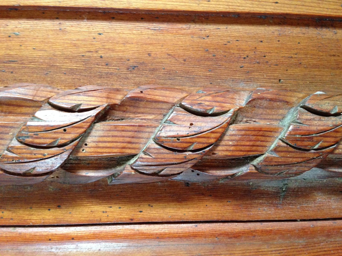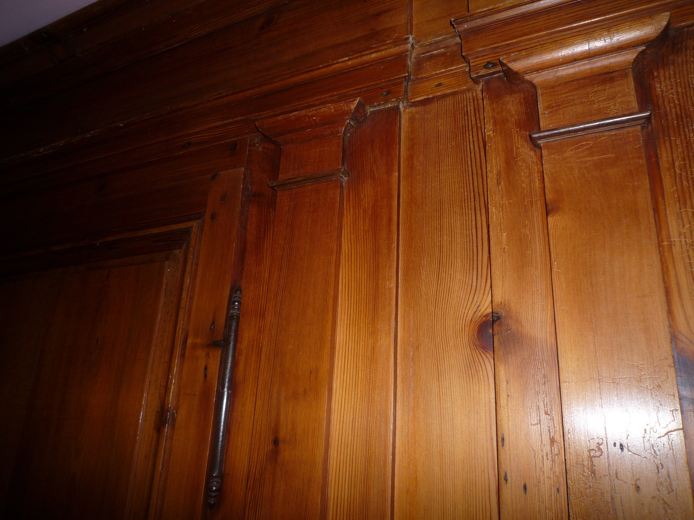 La menuiserie est un art plus délicat que la charpente, elle est également plus soumise aux styles. Les plièces exécutées pour les boiseries et les meubles sont souvent d'une grande complexité. La menuiserie laisse libre cours à l'imagination. Sous l'outil, le bois se prête à toutes les fantaisies du sculpteur. Pour réaliser ces ouvrages, l'ingénieur fournit le dessin, le menuisier construit, ajoure, moulure et guilloche tandis que l'ornemaniste réalise des décors d'arcatures, de feuillages, de rubans, de torsades et de fleurs suivant les modes. Le sculpteur, lui, composera en haut ou bas reliefs avec des bustes ou des statues. Tout une hiérarchie se créait entre ces différents artisans qui travaillaient sur les mêmes pièces. Rappelons que recouvrir les murs intérieurs de boiseries était à l'époque le moyen le plus simple d'isoler les maisons. Qu'elles soit nobles ou plus modestes, les maisons normandes nous laissent aujourd'hui de beaux morceaux de menuiserie. De différents styles : XVème, XVIème, Louis XIII, Louis XIV, Louis XV ou Louis XVI, les boiseries étaient chevillées ou clavetées pour être démontables. Ainsi elles ont souvent été revendues, réajustées, complétées ou remplacées suivant la mode du moment. Il est possible de reconstituer l'histoire d'un bâtiment en observant ses pièces de charpente et de menuiserie in situ.