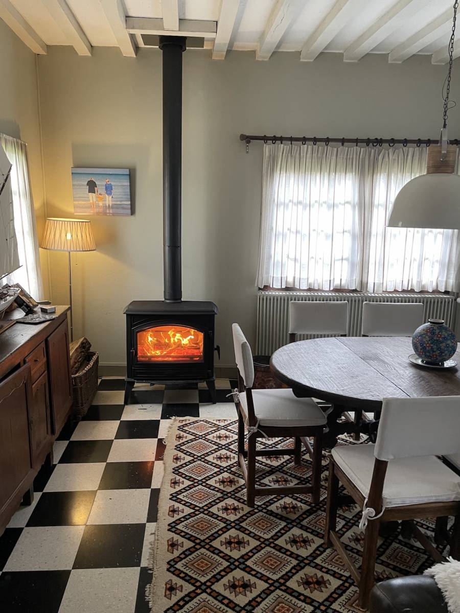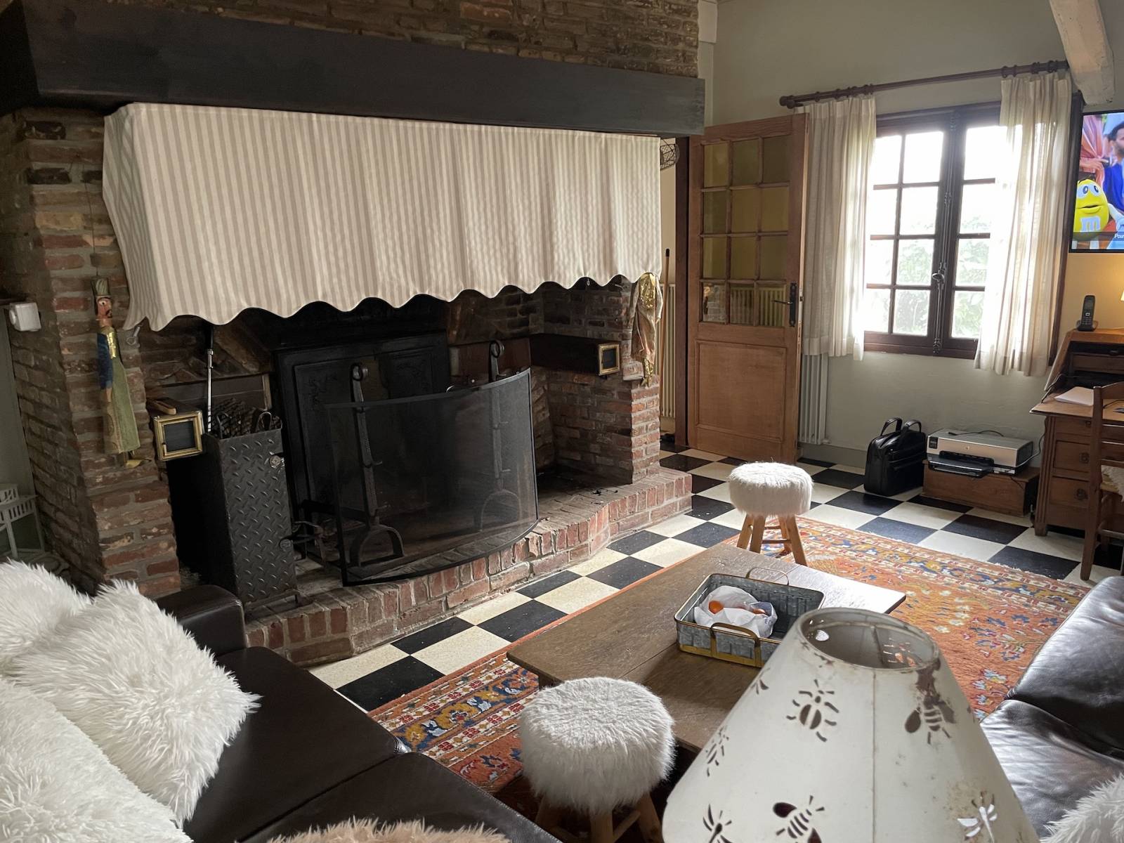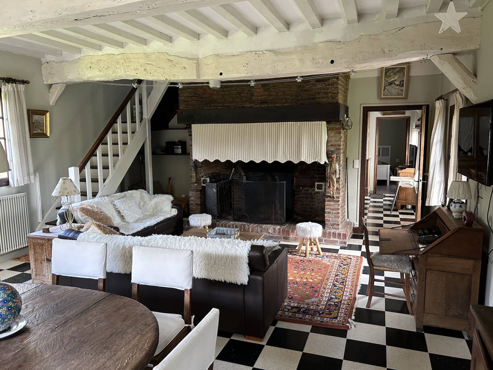 EXCLUSIVITE BELLE CHAUMIERE EN COLOMBAGES 5 PIÈCES PROCHE DES PLAGES DE LA CÔTE NORMANDE : D'une surface d'environ 130 m2, elle comprend au rez-de-chaussée une salle à manger/cuisine aménagée et équipée avec cheminée de 24 m2, un séjour avec poêle à bois et cheminée de 38 m2, une chambre de plain pied de 13 m2, une salle de bain avec wc de plain pied de 7 m2 et lingerie-chaufferie de 18 m2. Au premier étage, une pièce palière de 8 m2 avec couchage d'appoint desservant 2 grandes chambres (15 et 19 m2) et une salle de douche avec wc de 6 m2. Beau terrain de 2.236 m2 en nature de jardin. Assainissement relié au réseau de tout à l'égout. Chauffage central gaz et poêle à bois. Confortable immédiatement, cette chaumière de charme saura accueillir rapidement famille et amis.