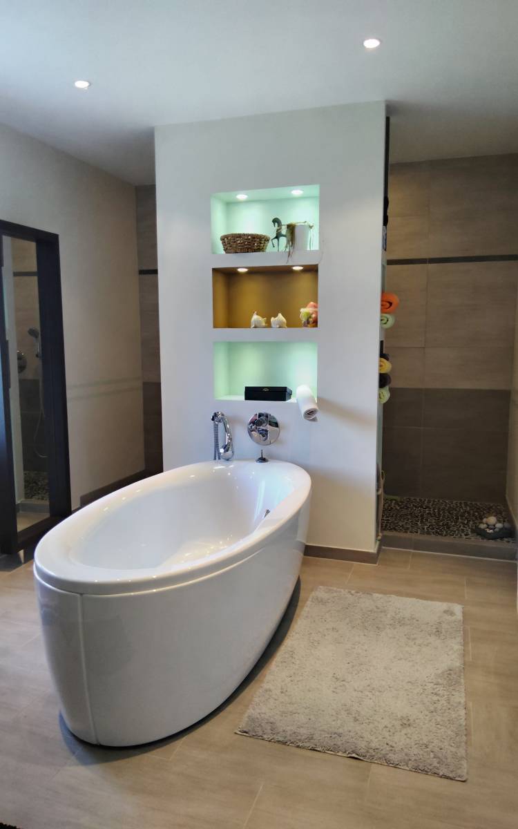 Le tout sur un terrain paysager et aménagé de 4.500 m2 environ bordé de hêtres séculaires à proximité immédiate des plages de la côte d'Albâtre.