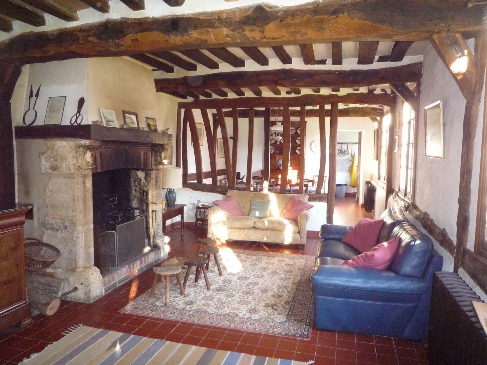 Dépendance comprenant grande pièce avec cheminée. Grange, garages, charreterie et cave.