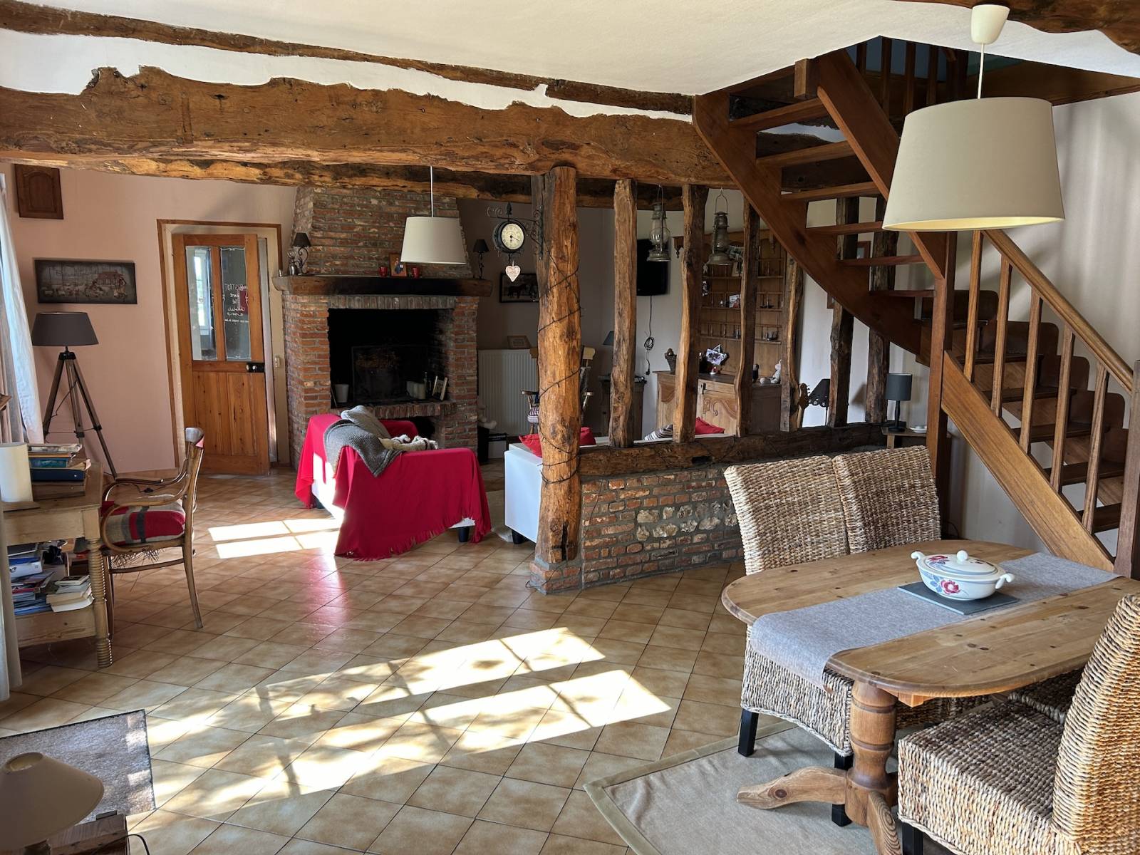 Renovated 7-room longère between village and countryside : This charming Norman longère of approximately 160 m² offers a perfect blend of rural tranquility and nearby amenities, located in the desirable area of Terres-de-Caux. On the ground floor, it includes a fitted and equipped kitchen (13 m²), a dining room with fireplace (20 m²), a shower room with WC (4 m²), a laundry room (16 m²), a boiler room, and a spacious living room with fireplace (45 m²). Upstairs, there are three bedrooms (10, 8, and 15 m²), a study (7 m²), a separate WC, and a bathroom (3 m²). The house is connected to mains drainage and heated by an oil-fired boiler. The 3,200 m² plot consists of garden, orchard, and grassland. An outbuilding of 65 m² on the ground floor is divided into three horse stalls. On the upper floor, a 32 m² studio to renovate includes a kitchenette, shower, WC, and living space. Located in a peaceful setting yet just minutes from all shops, this property combines the benefits of country living with the convenience of town access.